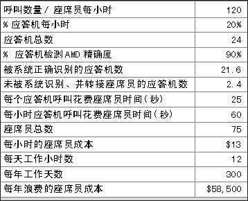 表1和表2表明在一個(gè)呼叫中心中精確的應(yīng)答機(jī)檢測(AMD)給企業(yè)所帶來的價(jià)值,兩表之間關(guān)于呼叫中心運(yùn)營的費(fèi)用每年相差$175,500。那么不同的AMD精確度意味著什么?在上例中,精確度每增加1%意味著每年會減少約$5,850的損失。