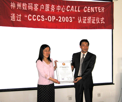 2005年6月2日,神州數(shù)碼呼叫中心通過(guò)了《全國(guó)呼叫中心運(yùn)營(yíng)績(jī)效標(biāo)準(zhǔn)》(CCCS-OP-2003)認(rèn)證,并獲得由中國(guó)信息化推進(jìn)聯(lián)盟客戶關(guān)系管理專業(yè)委員會(huì)頒發(fā)的認(rèn)證證書(shū)(四星級(jí)客戶服務(wù)中心),成為國(guó)內(nèi)IT行業(yè)首家通過(guò)此認(rèn)證的呼叫中心。