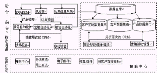 在企業(yè)中對于客戶關(guān)系資源管理方面可歸納為兩個方面的問題。其一,企業(yè)的銷售、營銷和客戶服務(wù)部門難以獲得所需的客戶互動信息。其次,來自銷售、客戶服務(wù)、市場、制造、庫存等部門的信息分散在企業(yè)內(nèi),這些零散的信息使得無法對客戶有全面的了解,各部門難以在統(tǒng)一的信息的基礎(chǔ)上面對客戶。這需要各部門對面向客戶的各項信息和活動進(jìn)行集成,組建一個以客戶為中心的企業(yè),實現(xiàn)對面向客戶的活動的全面管理。