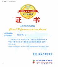 CTI論壇(ctiforum)10月12日消息: 近日,備受關(guān)注的CIPCA2009中國(guó)IP通信大獎(jiǎng)評(píng)選活動(dòng)近日落下帷幕,科大訊飛繼2008年之后,再次捧獲2009年中國(guó)最佳語(yǔ)音識(shí)別合成提供商獎(jiǎng)項(xiàng)。CIPCA中國(guó)IP通信大獎(jiǎng)是國(guó)內(nèi)下一代網(wǎng)絡(luò)通信行業(yè)最專業(yè)、權(quán)威的獎(jiǎng)項(xiàng),由全球IP通信聯(lián)盟發(fā)起,力主公正、公開、公平。全球IP通信聯(lián)盟是中國(guó)最大的下一代網(wǎng)絡(luò)/通信行業(yè)門戶媒體及行業(yè)聯(lián)盟,縱跨固網(wǎng)和移動(dòng),涵蓋UC統(tǒng)一通信、IP語(yǔ)音、視頻、呼叫中心、即時(shí)通信、無(wú)線通信、IPTV等下一代通信各領(lǐng)域以及相關(guān)的安全、測(cè)試、芯片等行業(yè)。中國(guó)IP通信大獎(jiǎng)通過網(wǎng)絡(luò)評(píng)比與專家測(cè)評(píng)相結(jié)合的形式選拔產(chǎn)生,旨在肯定業(yè)內(nèi)優(yōu)秀企業(yè)為行業(yè)發(fā)展所作的努力與貢獻(xiàn),推動(dòng)市場(chǎng)的良性發(fā)展,同時(shí)為行業(yè)用戶提供一個(gè)權(quán)威的參考平臺(tái)。