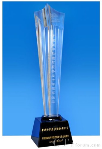 作為本次大會最具分量的獎項,“十年領(lǐng)軍企業(yè)獎”是授予給近十年來在IT行業(yè)內(nèi)具有帶頭作用和示范作用的杰出國內(nèi)企業(yè),科大訊飛與東軟集團、神州數(shù)碼、浪潮集團等十家企業(yè)共同獲獎。十三年來,科大訊飛由一家大學生創(chuàng)業(yè)企業(yè)發(fā)展成為中國語音產(chǎn)業(yè)龍頭企業(yè),在語音合成、語音識別、口語評測等多項技術(shù)上擁有國際領(lǐng)先的成果,連續(xù)六年(2006-2011)獲得國際英文合成大賽冠軍,連續(xù)四年(2008-2011)在國際說話人、語種評測識別大賽中名列前茅,開發(fā)合作伙伴已超過5000家,以訊飛為核心的中文語音產(chǎn)業(yè)鏈已初具規(guī)模,訊飛語音已深入各行各業(yè)、飛入千家萬戶。