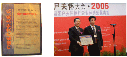 "中國客戶關懷大獎"評獎結果在大會上揭曉,北京市政府熱線憑借多年來為北京市民排憂解難、為市領導反映社情民意的服務理念和實際行動榮獲了"最佳呼叫中心"獎。