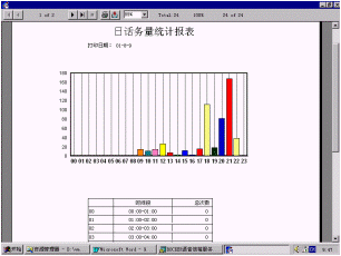 日話務(wù)量統(tǒng)計報表、線路話務(wù)量統(tǒng)計報表、操作類型分類統(tǒng)計報表、電腦話務(wù)分類統(tǒng)計報表。