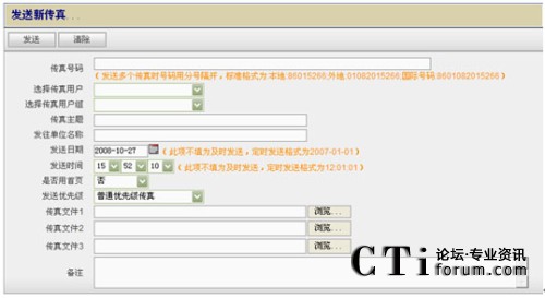 - 客戶端發(fā)送傳真:在客戶端選擇發(fā)送傳真文件,可以將文件定時發(fā)送至某一用戶或發(fā)送至用戶組(用于批量發(fā)送傳真)
