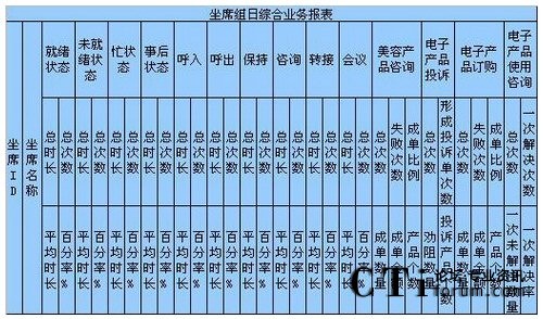 c)如果想對這個組的坐席進行整體的坐席狀態(tài)進行考核,以便確定工作負(fù)荷、績效考核,形成每天、每月、每季度、每年、按組、按技能,平均、總計、總合、最大、最小數(shù)據(jù)比較的表格、圖表,對不起要么你放棄這個想法,要么你重新開發(fā)軟件進行計算;