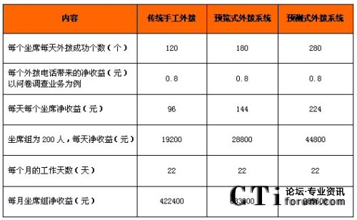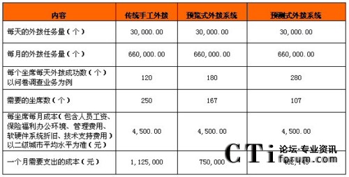 Hi-Dialer為不少呼叫中心企業(yè)帶來的前所未有的收益。我們可以進(jìn)行一個(gè)簡單的實(shí)景測算,目前國內(nèi)典型的擁有預(yù)測式外呼的呼叫中心都有單純的呼入坐席,假設(shè)呼入坐席500席,預(yù)測式呼出坐席1000席,呼入和呼出坐席的呼叫中心系統(tǒng)分別獨(dú)立,如果是業(yè)務(wù)量飽和的狀態(tài)下,全部坐席是可以用的,但是在業(yè)務(wù)量不飽和的狀態(tài)下,想讓這1000坐席接聽呼入電話,卻辦不到。這就形成了一個(gè)巨大的漩渦,將企業(yè)的軟硬件成本、場地租金和人力資源無情的吞噬掉了。新的勞動(dòng)法又規(guī)定企業(yè)不得隨意裁人,那么這時(shí)候企業(yè)就會(huì)非常頭疼。這是一個(gè)典型的重復(fù)建設(shè)項(xiàng)目。