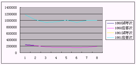 通過(guò)對(duì)各曲線均值與峰值的對(duì)比,也可以清晰的看出,新1861系統(tǒng)的上線不僅有效的提高了1861熱線的接通率,增大了系統(tǒng)容量,而且對(duì)1860系統(tǒng)也進(jìn)行了大大的緩解。