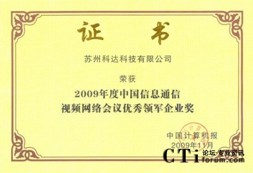 CTI論壇(ctiforum)12月24日消息(記者 潘婷):近日,在2009中國信息通信產(chǎn)業(yè)年度評選活動中,科達憑借優(yōu)秀的品牌效應和領先的市場占有率榮獲“中國信息通信視頻網(wǎng)絡會議優(yōu)秀領軍企業(yè)獎”。