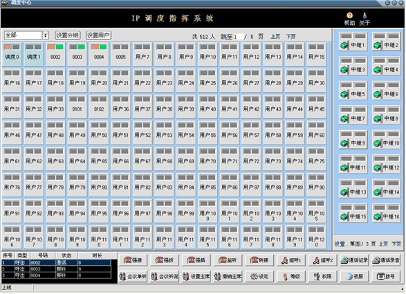 調(diào)度臺(tái)可顯示用戶(hù)、中繼的工作狀態(tài),所有狀態(tài)一目了然,調(diào)度員可方便的運(yùn)用強(qiáng)插、強(qiáng)拆等功能