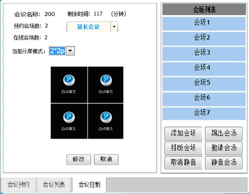 添加一個(gè)會(huì)場(chǎng)到當(dāng)前會(huì)議當(dāng)中。點(diǎn)擊“添加會(huì)場(chǎng)”按鈕,會(huì)出現(xiàn)彈屏,雙擊會(huì)場(chǎng)完成添加。