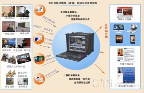 相比傳統(tǒng)的直播錄播系統(tǒng),經(jīng)緯中天支持多終端應(yīng)用的富媒體直播錄播系統(tǒng)突出了以用戶為中心,除了簡單的視頻直播,更加豐富地融合了多內(nèi)容媒體直播錄播功能,例如信息發(fā)布、圖文直播、互動交流、圖片報道等,同時以全FLASH富媒體模板形式全方位展示現(xiàn)場信息,更主要的是支持多終端應(yīng)用,不僅僅是傳統(tǒng)的PC、電視機(jī),還可通過IPAD等多種平板電腦實現(xiàn)應(yīng)用,充分滿足了用戶的需求,極大地擴(kuò)展了網(wǎng)絡(luò)視頻應(yīng)用范圍。