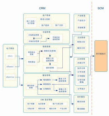 實現動態(tài)價值鏈環(huán)境下的CRM,支持電子商務、協作商務,并與SCM集成。