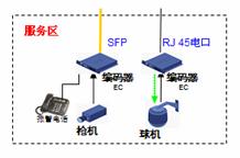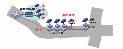 道路沿線監(jiān)控:采用EPON組網(wǎng),路況監(jiān)控球機(jī)接入前端編碼器,多個編碼器通過一根EPON光纖接入到中心交換機(jī)上,布線方便節(jié)省光纖資源。編碼器內(nèi)置交換機(jī)功能可以接入IP報警電話方便公路報警。還可以將支持IP接口的可變信號板和氣象站直接接入編碼器交換機(jī)端口,實現(xiàn)一網(wǎng)多用,降低整體網(wǎng)絡(luò)成本。