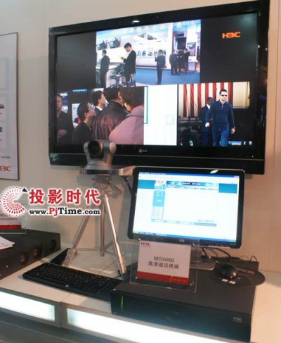 H3C本次重點展示的高清視頻會議系統(tǒng)包括MG9060視頻會議終端和ME8000高清視訊多點控制單元。