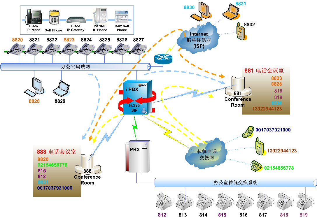 eTalk® iPBX與傳統(tǒng)交換機(jī)的組網(wǎng)