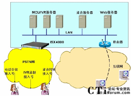 STOP SERVICE)平臺,是當(dāng)前和未來電信運(yùn)營商(TCO)及虛擬服務(wù)提供商(SP/CP)增值業(yè)務(wù)規(guī)劃的最佳選擇,特別是中國重組后的3大運(yùn)營商都具備全業(yè)務(wù)運(yùn)營資格,正在規(guī)劃前所未有的全業(yè)務(wù)運(yùn)營平臺(融合有線和無線、融合語音和數(shù)據(jù)、融合2G和3G、融和傳統(tǒng)PSTN和NGN網(wǎng)絡(luò)、融合電信網(wǎng)和互聯(lián)網(wǎng)),怎樣的設(shè)備才能問鼎和支撐這樣的全業(yè)務(wù)平臺?不妨仔細(xì)研究ISX4000的豪華單機(jī)和級聯(lián)配置:單機(jī)支持最大128E1(SS7、PRI)光電接口接入、4096路語音資源、4096路會議資源、多達(dá)6464路IP(G.711-6464路、G.729-2688路、G.723-2048路)、768路傳真資源、1280路FSK資源(用于E-POS)、1024路視頻資源。通過簡單易用的管理維護(hù)工具OAM可以對上述資源任意組合、動態(tài)配置、平滑升級。不僅如此,ISX4000本機(jī)同步配置的DSP采用高性能的回聲消除和音質(zhì)增強(qiáng)(EC