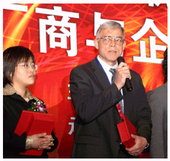 穆彼得先生接過(guò)十大咨詢(xún)商榮譽(yù)證書(shū)