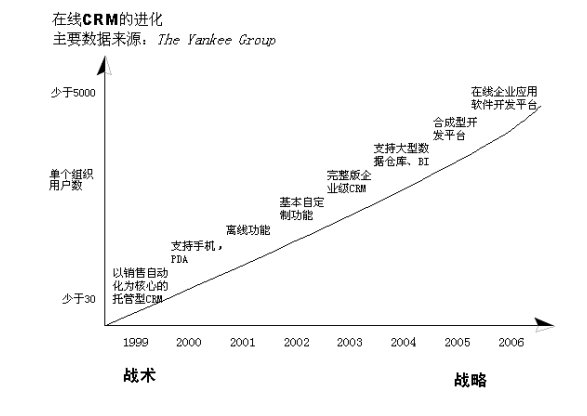 2005年是全球CRM市場發(fā)生天翻地覆變化的一年,CRM市場已達(dá)到120億美元規(guī)模(根據(jù)AMR數(shù)據(jù))。傳統(tǒng)應(yīng)用軟件商們紛紛涉足應(yīng)用軟件托管,但三心二意。傳統(tǒng)應(yīng)用軟件巨頭Siebel,因客戶選擇其托管CRM而通常不會(huì)再買其高利潤的傳統(tǒng)CRM產(chǎn)品,其在市場推廣力度和技術(shù)服務(wù)水平上遠(yuǎn)不如Salesforce,Siebel最后被Oracle收購。在Peoplesoft