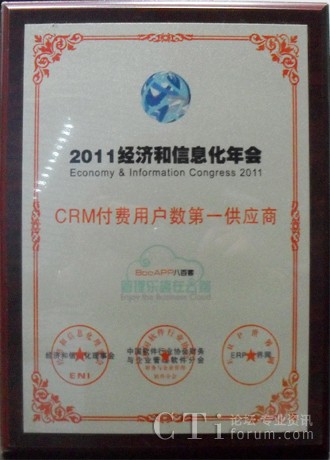 作為全球企業(yè)管理軟件領(lǐng)跑者,八百客參加了此次會(huì)議,并就IT業(yè)戰(zhàn)略性發(fā)展、工業(yè)轉(zhuǎn)型升級(jí)等問(wèn)題和與會(huì)企業(yè)家進(jìn)行了深入探討,集中、深刻闡釋產(chǎn)業(yè)精髓,洞悉和把握未來(lái)發(fā)展方向,尋求最佳的信息化成長(zhǎng)模式。年會(huì)期間的招待晚宴穿插各類年度大獎(jiǎng)的頒獎(jiǎng)典禮,讓與會(huì)的政界、學(xué)界、商界等各路貴賓充分交流信息,建立友誼,為達(dá)成長(zhǎng)期合作奠定良好的基礎(chǔ);诎税倏驮趪(guó)內(nèi)CRM領(lǐng)域的優(yōu)秀表現(xiàn),本次年會(huì)特別授予了八百客“CRM付費(fèi)用戶數(shù)第一供應(yīng)商”的大獎(jiǎng)。