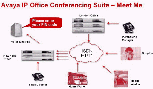 (如果PIN 密碼驗(yàn)證需要的話)。語(yǔ)音會(huì)議通知同樣也可被激活,并通知參會(huì)人員。這樣 VoiceMail Pro會(huì)撥打與會(huì)人員的電話,當(dāng)會(huì)議開始時(shí),如果這些與會(huì)人員被撥通,則把與會(huì)人員帶入到會(huì)議中。