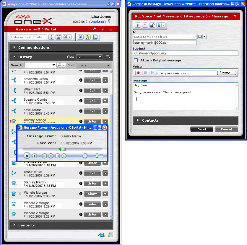 統(tǒng)一通信市場正在步入新的發(fā)展階段,新的產(chǎn)品與方案逐漸面世。在不久前舉行的全球企業(yè)通信盛會美國VoiceCon上, Avaya推出了全新的one-X Portal, 進一步把統(tǒng)一通信從理念帶向?qū)嶋H應(yīng)用。 Avaya one-X Portal能夠讓員工通過基于網(wǎng)絡(luò)的界面,簡便安全地使用各種通信功能,包括語音通信、消息管理、移動辦公和會議等等。通過簡便、創(chuàng)新的方式,這個方案讓使用者從桌面電腦獲得統(tǒng)一通信的全部功能,從而提高了效率、管理能力和業(yè)務(wù)連續(xù)性。