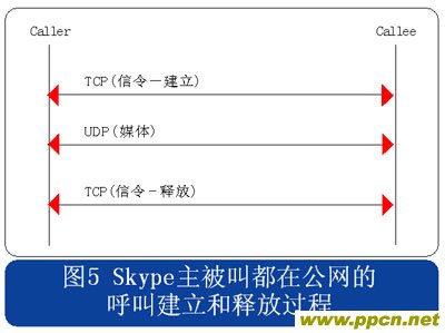 從上述流程圖可見(jiàn),Skype的呼叫信令都采用TCP封裝,而媒體流則使用UDP封裝,當(dāng)有任何一方用戶位于限制UDP包的防火墻內(nèi)時(shí),媒體流就會(huì)采用TCP封裝。另外當(dāng)Skype用戶至少有一方位于私網(wǎng)內(nèi)時(shí),所有的信令和媒體消息都經(jīng)過(guò)一個(gè)或多個(gè)中間節(jié)點(diǎn)轉(zhuǎn)發(fā)。此時(shí)無(wú)需擔(dān)心用戶通話的媒體流因?yàn)榻?jīng)過(guò)中間節(jié)點(diǎn)轉(zhuǎn)發(fā)而被竊聽(tīng),因?yàn)镾kype采用了對(duì)消息進(jìn)行端到端加密的機(jī)制。