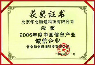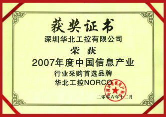 2007年1月16日,由中國(guó)計(jì)算機(jī)用戶協(xié)會(huì)(簡(jiǎn)稱(chēng)CCUA)主辦的“中國(guó)計(jì)算機(jī)用戶協(xié)會(huì)2006年度企業(yè)及產(chǎn)品推介頒獎(jiǎng)大會(huì)” 在北京世紀(jì)金源大飯店隆重召開(kāi),通過(guò)對(duì)中國(guó)境內(nèi)從事IT產(chǎn)品生產(chǎn)、銷(xiāo)售、集成和服務(wù)企業(yè)的經(jīng)營(yíng)規(guī)模、服務(wù)能力、產(chǎn)品使用效果、企業(yè)誠(chéng)信和持續(xù)發(fā)展能力等多項(xiàng)指標(biāo)進(jìn)行綜合評(píng)定,揭曉了中國(guó)信息產(chǎn)業(yè)2006年度優(yōu)秀企業(yè)評(píng)選與產(chǎn)品推介活動(dòng)結(jié)果。華北工控憑借其在業(yè)內(nèi)深入人心的影響,再次獲得“2006年度中國(guó)信息產(chǎn)業(yè)誠(chéng)信企業(yè)獎(jiǎng)”和“2007年度中國(guó)信息產(chǎn)業(yè)行業(yè)采購(gòu)首選品牌”。