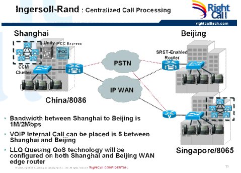 正音科技技術(shù)團隊,在實施切換前期進行了大量的調(diào)研、測試工作,嚴格按照PDIOO的項目執(zhí)行流程,尤其是在設(shè)計(Design)、實施(Implement)兩個階段中多次與用戶溝通論證,提交了項目切換過程中所需的精確實施配置文檔及應(yīng)急預(yù)案,在不中斷業(yè)務(wù)的情況下,利用周末兩天的時間完成了上海、北京兩地思科IP語音系統(tǒng)的切換。