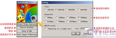 Video Service按鈕,對方就可以在聊天窗口中收到邀請信息,點(diǎn)擊“接受”按鈕后雙方自動啟動并進(jìn)入Clicktoparty軟件的主界面。您還可以以同樣的操作步驟,陸續(xù)邀請其他好友或聯(lián)系人加入,之后就可以享受Clicktoparty帶給您的強(qiáng)大功能和美好體驗(yàn),包括專業(yè)級的音視頻實(shí)時(shí)溝通、多人文字交流及私聊、桌面共享及遠(yuǎn)程協(xié)助、高速的文件傳輸、各種文檔的在線演示和討論等。