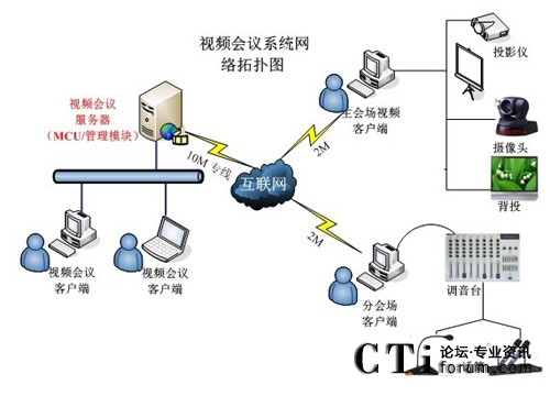 根據(jù)河南送變電建設(shè)公司的網(wǎng)絡(luò)現(xiàn)狀和現(xiàn)有的IT硬件資源以及各級各部門間的溝通協(xié)作需要,視維設(shè)計(jì)了一套可行的視頻會議系統(tǒng)解決方案,其網(wǎng)絡(luò)拓?fù)鋱D如下: