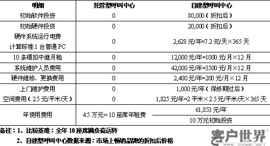 租用呼叫中心與自建呼叫中心成本對比表
