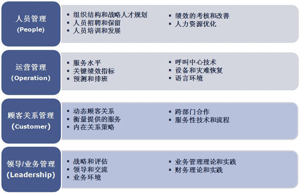 呼叫中心中高層管理人員認(rèn)證是為呼叫中心行業(yè)建立自己的“黃埔軍!薄Mㄟ^一系列的培訓(xùn),包含人員管理,運(yùn)營管理,顧客關(guān)系管理和領(lǐng)導(dǎo)/業(yè)務(wù)管理,來為呼叫中心行業(yè)培養(yǎng)合適的中高層管理人員。