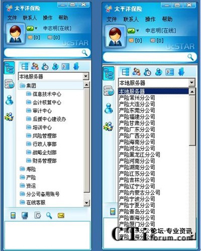 覆蓋全國的太平洋保險不僅在各省的城市有分公司,其分支機構也遍布全國各個區(qū)縣。如何將各項政策快速有效地傳達給各個分支機構,成為保險公司信息總部一直探索的一條“路”。如何讓基層機構也能參與日常的各項大大小小的會議,如何讓分布在全國的企業(yè)員工接受良好的培訓?傳統(tǒng)的通訊手段似乎難以滿足需要。中國太平洋保險(集團)股份有限公司是全國性股份制商業(yè)保險公司,成立于1991年4月,總部設在上海。大部分分公司已經自行使用很多即時通訊產品,但由于系統(tǒng)分散,各分公司管理能力存在差異,造成目前CPIC內部即時通訊軟件使用相對比較混亂,部分員工還存在使用MSN、QQ的現(xiàn)象,這種現(xiàn)象已經給公司安全生產帶來了一定的隱患。為此,太平洋保險集團的應用理應跳出即時通信的應用,選擇一個擴展性、控制性、可管性強大的通信平臺。