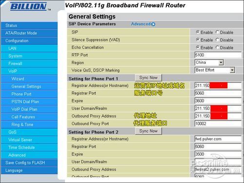 把申請得到的相關數據填入BiPAC 6404VGP中,在路由器后面接上電話就可以享受完全免費或超低價格的電話服務了。同一個SIP服務器下面的用戶互相撥打電話、收發(fā)傳真是免費的。