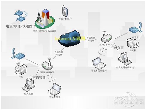BiPAC 6404VGP其實就是一個VoIP語音網關,VoIP就是一種把語音信號轉換成在網絡上傳輸的數字信號的技術,它的應用已經非常成熟,我們經常使用的QQ語音聊天功能也就是VoIP的一種表現形式。在所有大型跨國企業(yè)里我們幾乎都能看到VoIP技術的身影,這是因為電信運營商的長途電話費一般都不便宜,而我們企業(yè)的網絡使用費一般又是包月的,通過無限包月的網絡打免費的國際國內長途電話不就是占電信的便宜嘛?