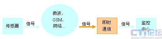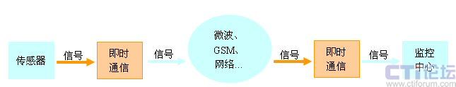 圖2是將遠(yuǎn)程監(jiān)測(cè)系統(tǒng)的一種典型建議方案,這種方案是主要用來優(yōu)化監(jiān)控中心的功能。傳感器將信號(hào)通過遠(yuǎn)程網(wǎng)絡(luò),直接傳入即時(shí)通信的輸入節(jié)點(diǎn)。即時(shí)通信可以利用TCP/IP網(wǎng)絡(luò),將數(shù)據(jù)送往監(jiān)控中心,同時(shí)也可以根據(jù)策略要求,送達(dá)即時(shí)通信多個(gè)客戶端,實(shí)現(xiàn)對(duì)多人同時(shí)報(bào)警的作用。