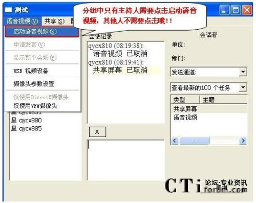 圖:清揚視頻會議軟件——啟動動態(tài)圖像共享與轉(zhuǎn)發(fā)