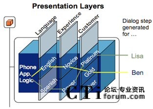而統(tǒng)一部署特性則在語音和移動(dòng)互聯(lián)網(wǎng)兩種訪問渠道上保證了這種操作界面的一致,如圖: