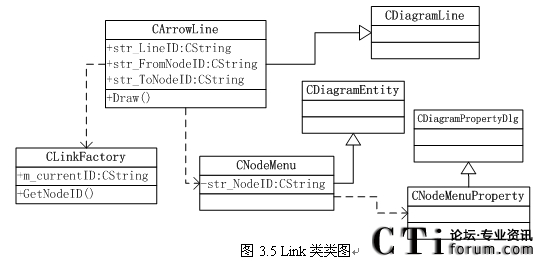 節(jié)點(diǎn)名稱(chēng)和一個(gè) 節(jié)點(diǎn)名稱(chēng)。類(lèi)圖如圖3.5所示,CLinkFactory類(lèi)的作用是一個(gè)獲取當(dāng)前節(jié)點(diǎn)名稱(chēng),CNodeMenu類(lèi)是菜單(Menu)