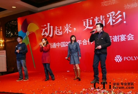 CTI論壇(ctiforum)2月22日消息(記者 袁青): 2009年月12月30日下午,寶利通“動(dòng)起來(lái)、更精彩”主題年會(huì)在北京國(guó)航萬(wàn)麗酒店隆重召開,直真信通公司代表與寶利通(中國(guó))全體員工以及中國(guó)區(qū)合作伙伴歡聚一堂,共饗盛典。在這里大家一同度過(guò)了4個(gè)多小時(shí)的快樂(lè)時(shí)光。除了美食之外,更多的是享受了一場(chǎng)視聽(tīng)盛宴。寶利通這支勇打勝仗的大隊(duì)伍,表演了自編自演的節(jié)目,內(nèi)容豐富多彩,堪稱一場(chǎng)民間春晚!