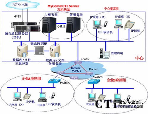 HMP軟件,由主機(jī)進(jìn)行媒體處理任務(wù),即可處理所有媒體資源,實(shí)現(xiàn)IPIVR(IP語音)、IPFAX(IP傳真)、IPAgent(IP座席)、IPConference(IP會議)、IPCall(IP呼叫),以及IPRecord(IP錄音)和IPVidio(IP視頻)等功能。如果呼叫中心系統(tǒng)需要增添新的功能,例如三方或多方通話、即時回?fù)、通信中斷自動恢?fù)等,只需要延用原有的Intel架構(gòu)硬件平臺,利用HMP軟件提供的API函數(shù)進(jìn)行開發(fā)即可完成。另外,如果業(yè)務(wù)量增長,只需提升硬件平臺的處理能力既可完成系統(tǒng)容量的升級。因此MyCommIPCC不僅經(jīng)濟(jì)高效、靈活、易于擴(kuò)容,而且節(jié)省了大量成本。