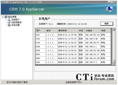 從下圖的列表可以看到實(shí)時(shí)的用戶連接數(shù),每個(gè)客戶端的CPU序列號(hào),硬盤(pán)序列,和唯一的登陸序列。并且可以選擇指定的用戶,對(duì)用戶做強(qiáng)迫下線,發(fā)送消息,截取用戶屏幕等操作。