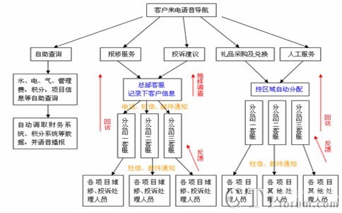 報修投訴、采購、人工咨詢及其他服務(wù)按統(tǒng)一的內(nèi)部流程處理,由各所屬項目座席受理后以短信或郵件的方式通知到各流程處理人員,處理完畢后反饋給項目座席,項目座席回訪并詢問服務(wù)滿意度,總部座席或管理座席隨機抽樣驗證。處理過程超過一定的期限將定時報送給相關(guān)管理人員。這一流程不僅確保收到了客戶的真實感受,更對服務(wù)的及時性、規(guī)范性作了監(jiān)督,將大大提升XX物業(yè)對客戶的服務(wù)水平。
