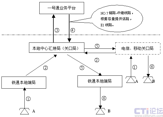 - 鐵通本地端局、聯(lián)通、移動、電信關(guān)口局接通電話用戶B;