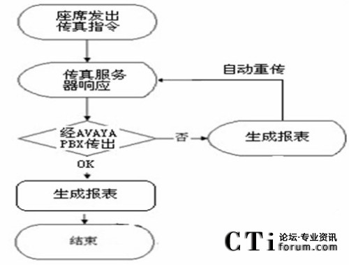 傳真請(qǐng)求是由呼叫中心系統(tǒng)接入,然后再統(tǒng)一分配到座席控制端。進(jìn)入傳真服務(wù)器的具體方式有兩種,一種是從AVAYA PBX直接進(jìn)入,另一種是從AVAYA