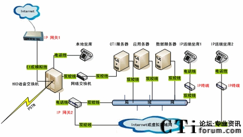 在這樣的背景下,我公司結(jié)合自身CTI設(shè)備優(yōu)勢,進(jìn)一步融入先進(jìn)的VOIP技術(shù),以實(shí)現(xiàn)各種用戶語音建設(shè)及網(wǎng)絡(luò)建設(shè)的需求。以下就我公司VOIP語音解決方案進(jìn)行簡單介紹,敬請有關(guān)專家、讀者批評指正。