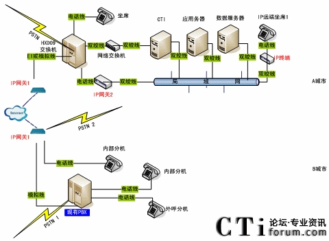 單一的呼叫中心往往是CTI+本地坐席的簡單服務(wù)模式,而在實(shí)際應(yīng)用中,由于地域分布的限制,單純的本地坐席無法滿足實(shí)際需要,需要提供遠(yuǎn)端坐席來實(shí)現(xiàn)地域之間的協(xié)作