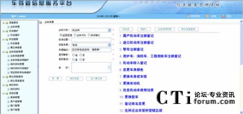 該模塊主要受理三大類業(yè)務(wù):咨詢類業(yè)務(wù)、代辦類業(yè)務(wù)和投訴建議類業(yè)務(wù),以及提供業(yè)務(wù)咨詢和業(yè)務(wù)代辦時的相關(guān)業(yè)務(wù)信息檢索和機動車、駕駛?cè)司C合信息的查詢驗證。