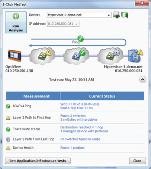 OptiView XG v8 具備兩種新的故障排除功能:一鍵 NetTest 和自動多段分析,能夠迅速確定數(shù)據(jù)路徑以及隔離出物理和虛擬網(wǎng)絡中的問題。只需按一下按鍵,一鍵 NetTest 就能找出單個屏幕視圖里的連接路徑。