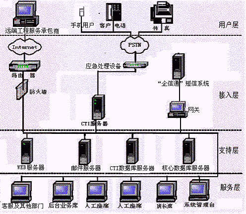 整個(gè)客戶服務(wù)系統(tǒng)的網(wǎng)絡(luò)結(jié)構(gòu)圖如下:
